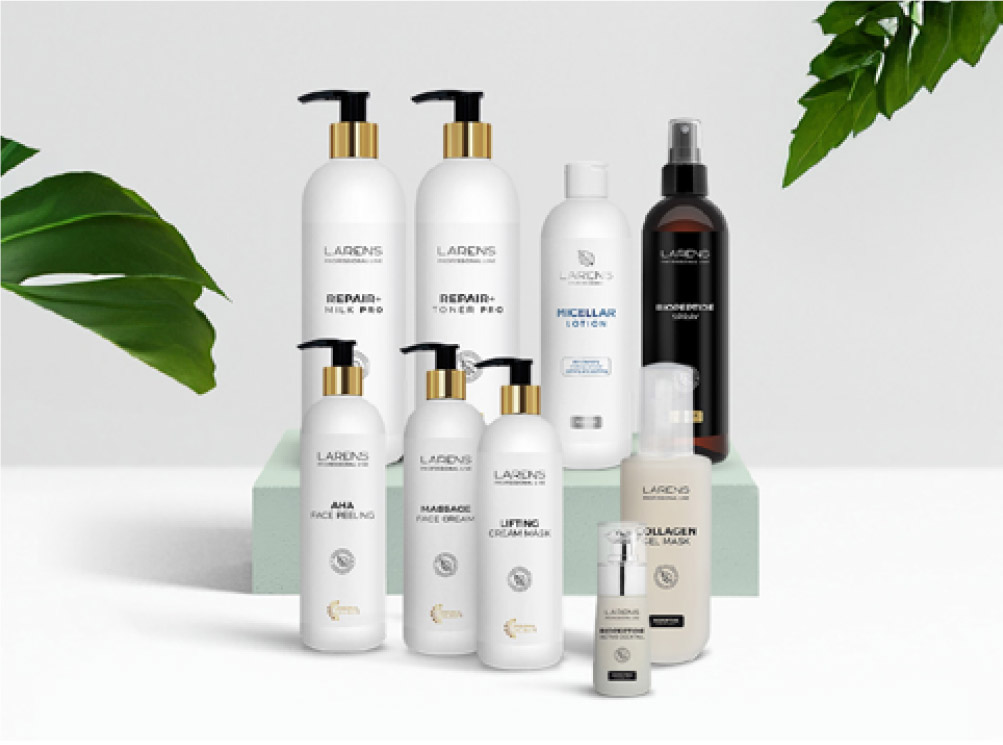 Dopřejte své pleti výživu, hydrataci a lifting s kosmetikou LARENS PROFESSIONAL, s obsahem peptidů rybího kolagenu nebo BIO PLACENTY.